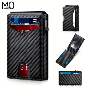 Minimalist Business Men's Wallet; Ultra-thin Front Pocket; Genuine Leather Carbon Fiber; RFID Blocking; Folding Seal; Card